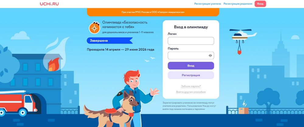 Для участия в Олимпиаде необходимо зарегистрироваться на платформе Учи.ру или войти с логином и паролем.